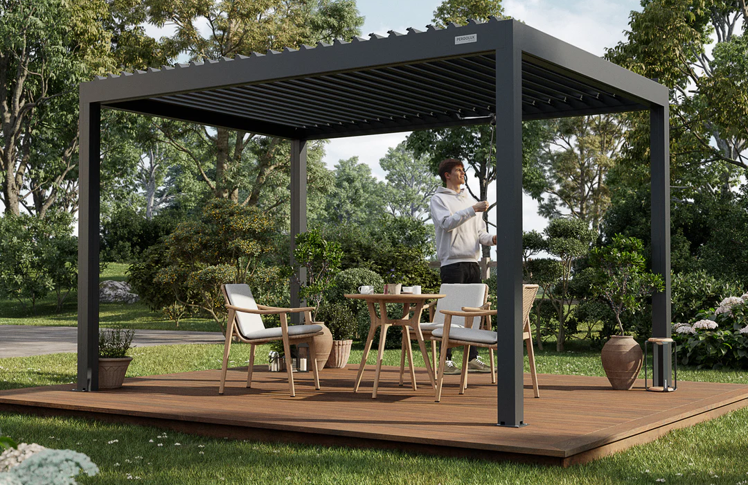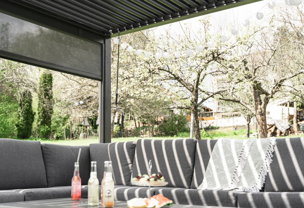 Discover the essence of sophisticated outdoor living with the PERGOLUX Pergola S2, where every detail is crafted for your comfort and enjoyment.