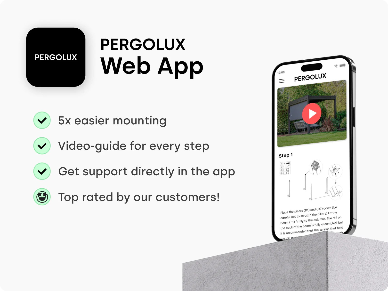 The PERGOLUX Web App helps you every step of the way, including simple photos and a video-guide.